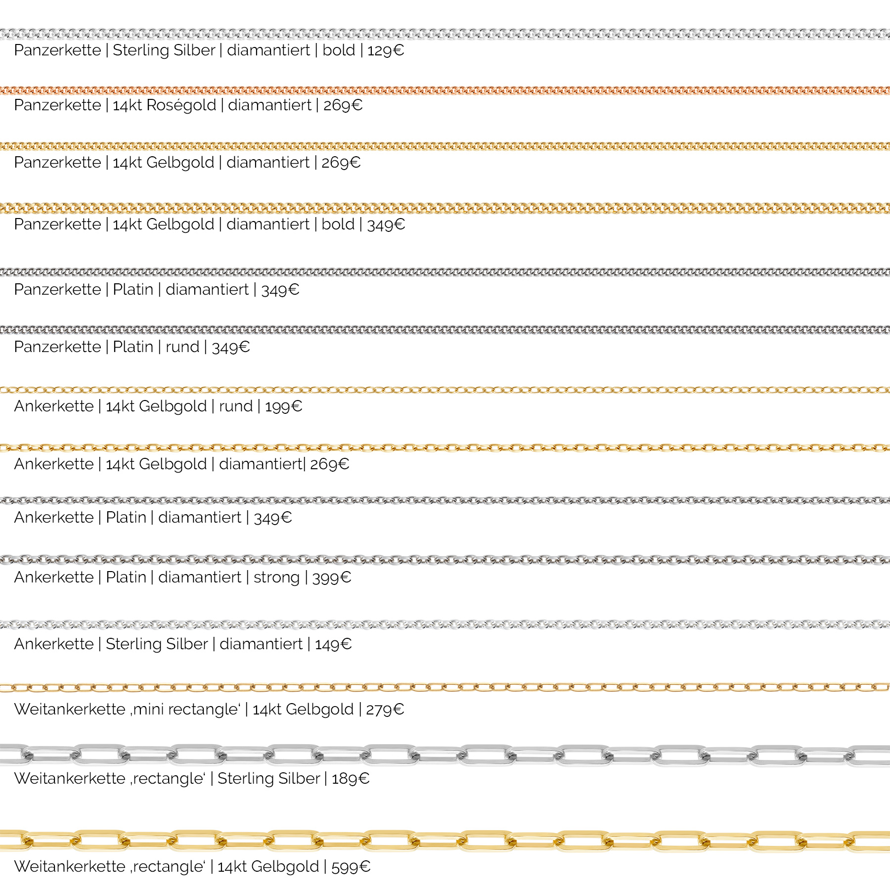 - Weitankerkette ‚rectangle‘ 14kt Gelbgold (599 €) oder Sterling Silber (189 €)