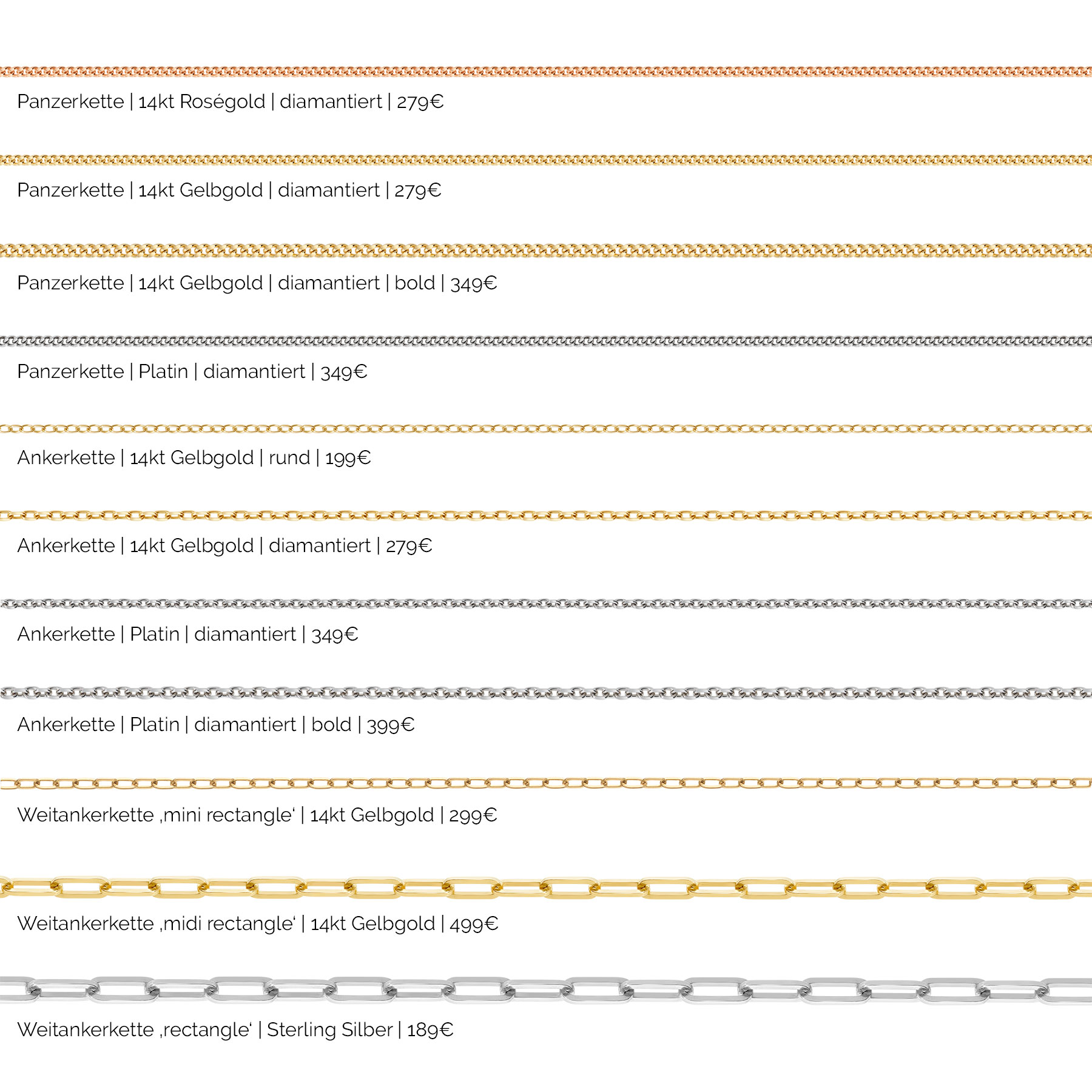 - Panzerkette 14kt Gelbgold oder 14kt Roségold, 279€